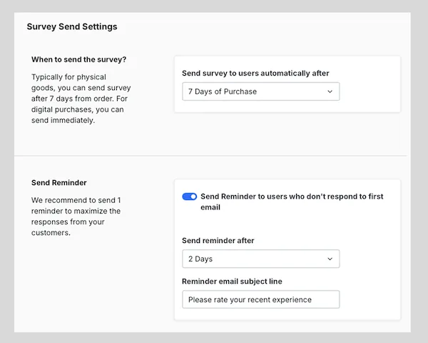 Let the surveys run on autopilot. Define survey trigger points across customer touchpoints – onboarding, browsing, checkout, support interaction, etc. Choose the distribution channel(s) and set up automated reminders.