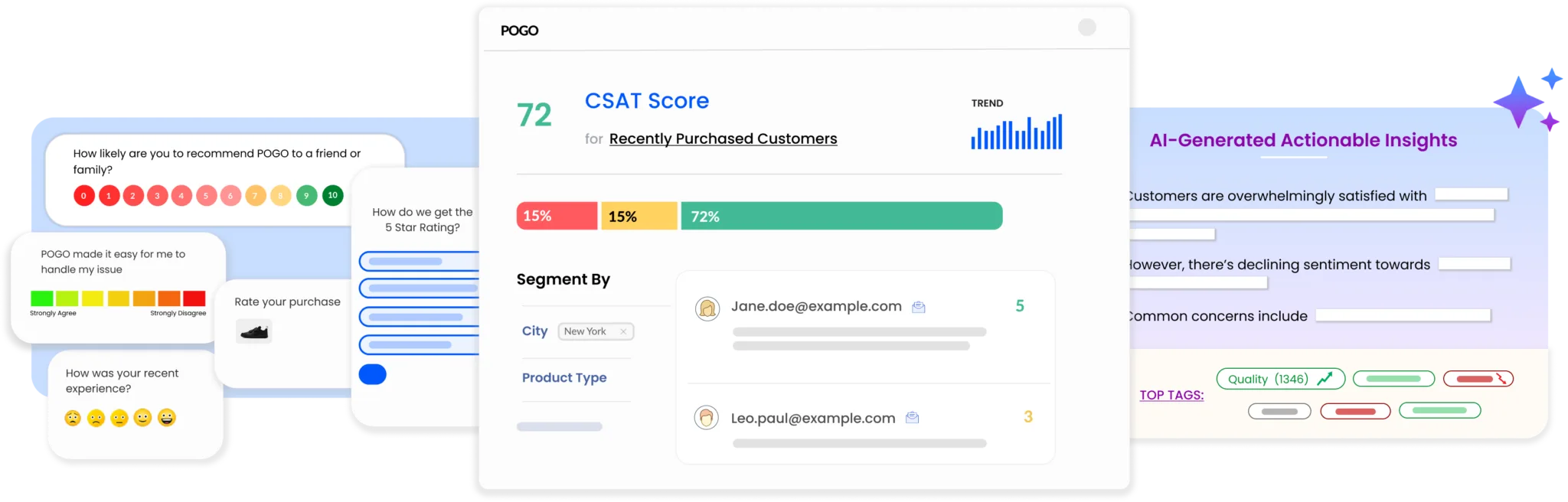 Send surveys via Emails, SMS, WhatsApp, Web Embeds, In-App Pop-ups, and Kiosks for maximum reach and response. Automate survey triggers based on customer actions.